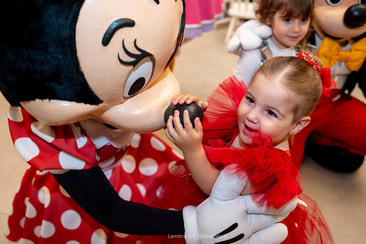 A festa foi linda, com o tema da Minnie Mouse, claro que ainda acompanhada de Mickey e Margarida, tudo preparado com muito carinho. Mas o mais lindo mesmo foi ver os olhinhos da Gio brilhando de emoção ao encontrar os personagens! Ela pulava, sorria, se entregava ao momento com a pureza e a intensidade que só uma criança feliz sabe viver.