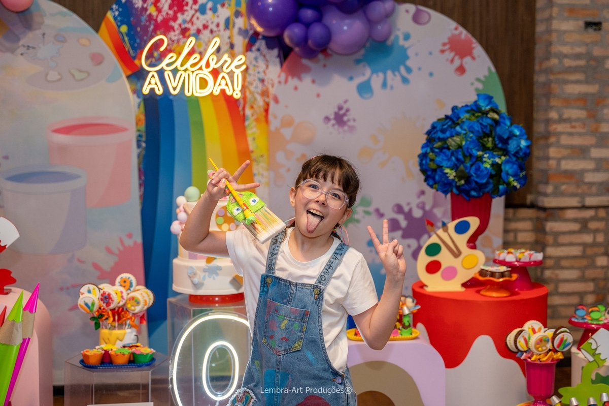 Este ano, a festa foi diferente… e igualmente especial. Tivemos um universo das cores, da arte, criatividade e da imaginação. Desde os pincéis fofos criados e personalizados por ela mesma (e claro que já esqueci os nomes deles hahahaha) e também seus desenhos encantadores compondo a decoração da festa e um ateliê cheio de vida, que os convidados produziram a própria lembrancinha, e deram o tom perfeito para celebrar o jeito Clarice de ser: leve, espontânea, sorriso fácil e um coração apaixonante.